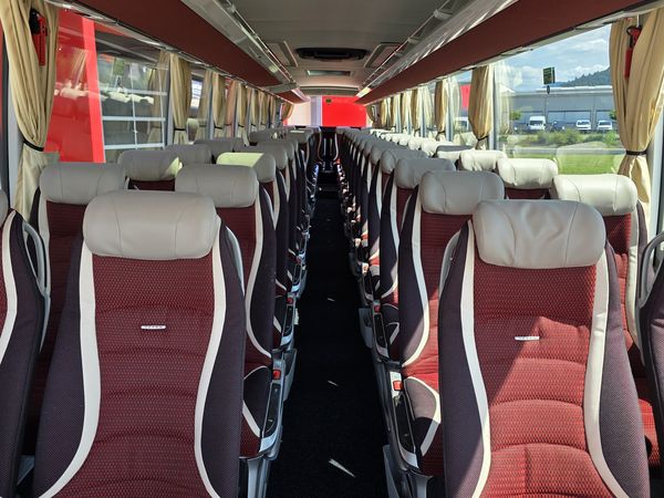 Toilette, Klimaanlage, Reisebestuhlung, Fußraster, verstellbare Kopfstützen, Küche/Kaffeebar, BT-Radioanlage, DVD-Videoanlage, Navigation, Doppel-USB-Anschluss Typ A / C.