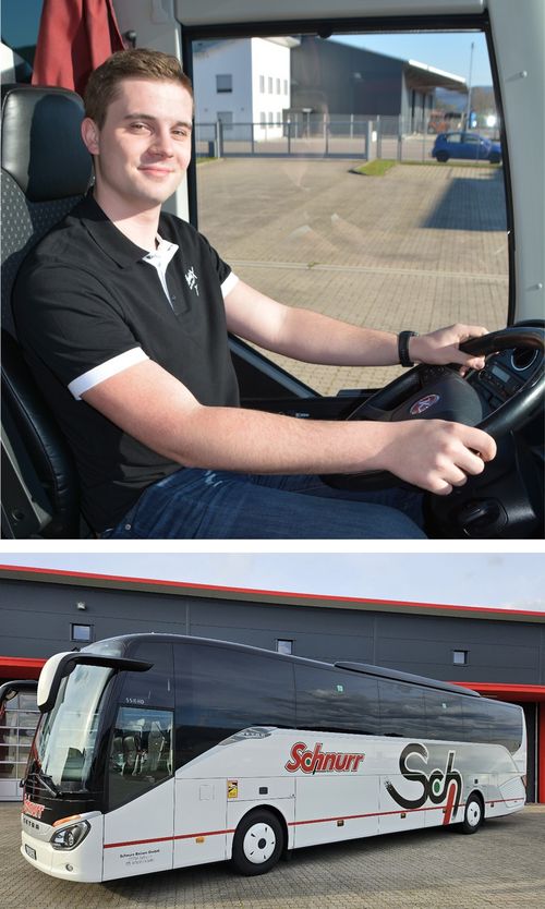Der Sohn des Firmengründers Robert Schnurr macht den Busführerschein und darf mit 18 Jahren den kleinen Bus fahren.