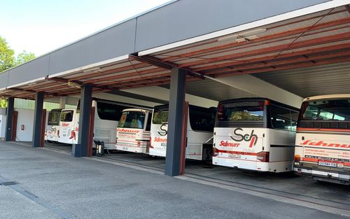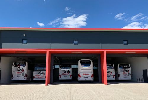 Um die große Fahrzeugflotte sicher unterzubringen wurde im neuen Gewerbegebiet Erlenbach in Zell am Harmersbach von Robert Schnurr eine neue Omnibushalle gebaut. Dieses Gelände bzw. Halle dient vor allem der Unterbringung der Reisebusse um den Standort Steinenfeld zu entlasten. Eine weitere Waschhalle entzerrt in der Hochsaison die Wartezeiten. Auch im Winter können nun alle Fahrzeuge sicher und geschützt untergestellt werden. Für unsere Buskunden haben wir genügend Parkplätze sowie ein gesichertes Gelände geschaffen.